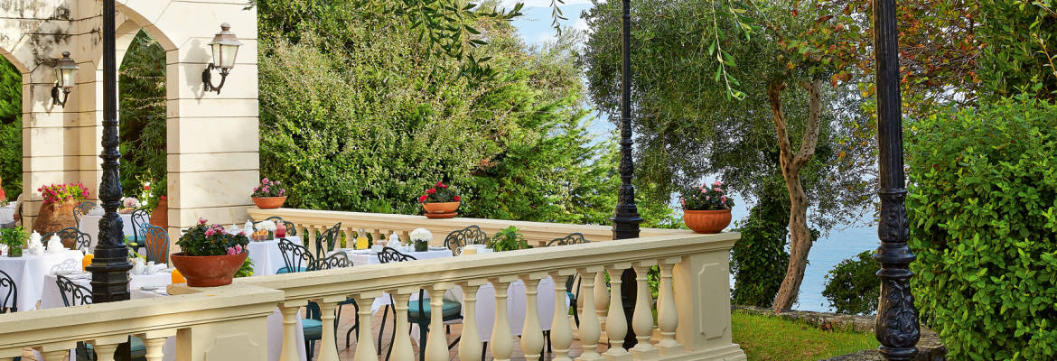Half Board from £19 • Breakfast and dinner at Mon Repos restaurant. Alternatively, guests who wish to dine at one of the à la carte restaurants at Grecotel Corfu Imperial, Eva Palace or Daphnila Bay Thalasso will receive a set credit.