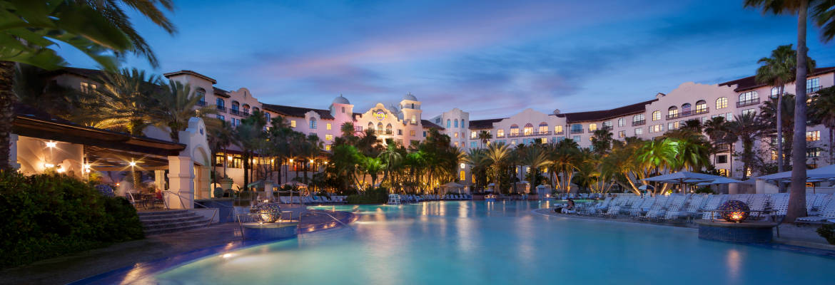 Bringing its famous steak house dining to Orlando, The Palm restaurant offers a New York-style atmosphere with all the American classics on the menu, from prime cuts of steak to fresh Nova Scotian lobster. The Kitchen offers a variety of tantalising cuisines with and rock ‘n’ roll atmosphere, while for something sweet, Emack & Bolio’s Marketplace is a true Boston ice-cream parlour experience. If you’re after liquid refreshment, head to the BeachClub for delicious cocktails (guests must be 21 or over to consume alcoholic beverages; you will be required to show a valid photo ID) and a light snack. Rooms here are comfortable and tastefully decorated with photos of rock royalty adorning the walls. There are a wide range of rooms and suites available, with something for everyone.