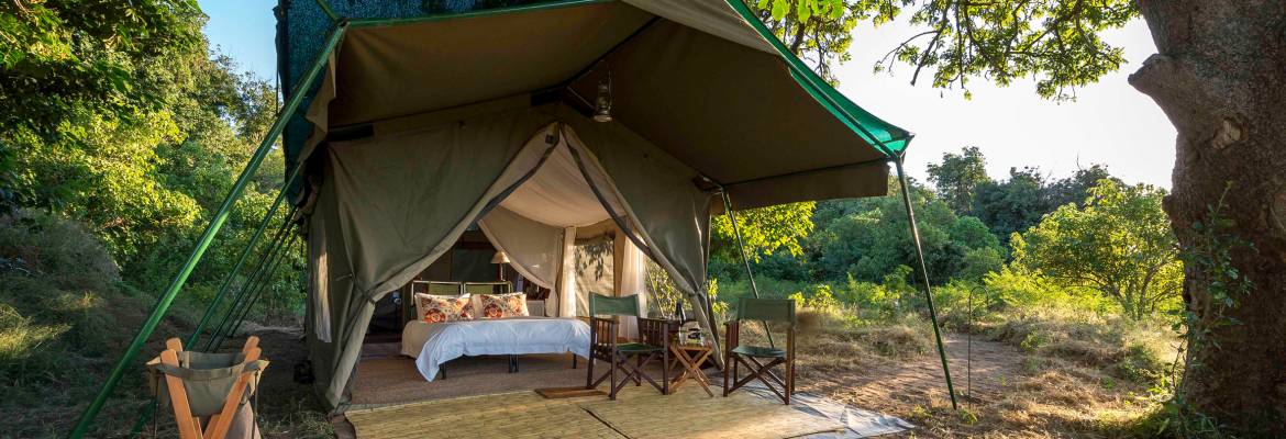 Safari simplicity takes on a whole new meaning here. Dining is alfresco and the camp is unfenced, so it’s not rare to see an elephant or buffalo leisurely wandering through. Each simple meru-style tent is generously spaced along the floodplain, and guarantees exceptional privacy and stunning river views. Both rustic yet comfortable, expect only the bare luxuries here. Forget the charging sockets, Wi-Fi or the plush bathrobes and slippers; instead, the back-to-nature vibes offer a shaded veranda and comfortable camp bed, with a flush toilet and simple overhanging bucket shower out back.